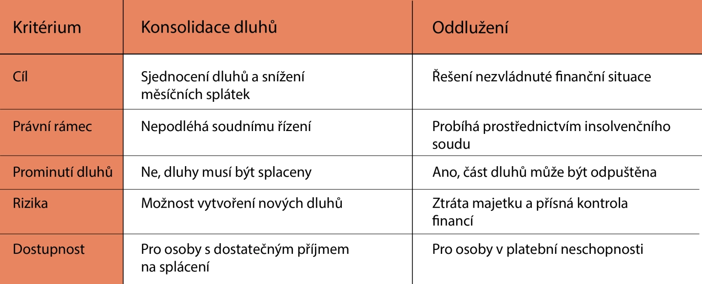 Hlavní rozdíly mezi konsolidací dluhů a oddlužením